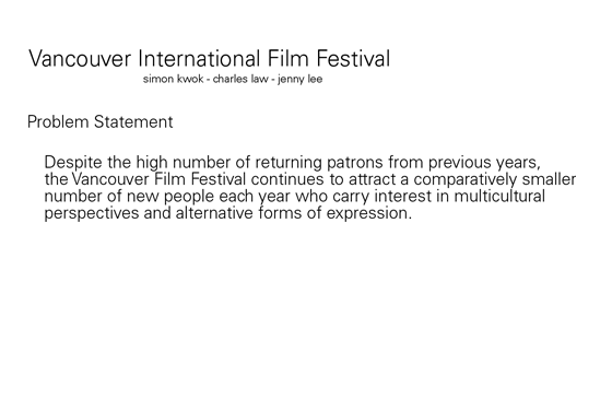 This project was done in a team of three to create an advertisement for the Vancouver International Film Festival as a class exercise. We captured our own video footage and used Adobe AfterEffects to compile everything.