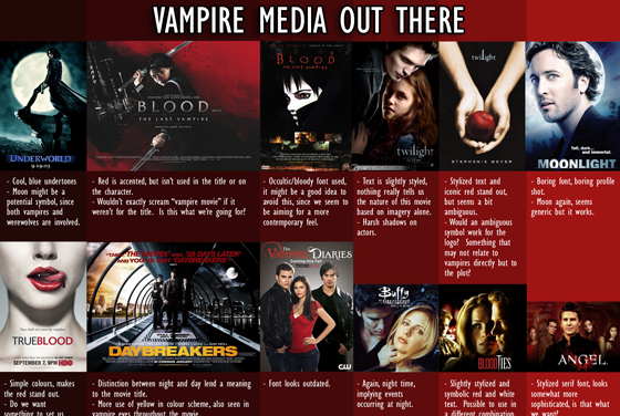 Preliminary research on how various vampire TV shows and movies brand themselves to determine how Blood Lost could stand out.
