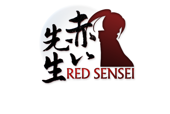 Preliminary logo ideas for an animated TV show that the main character on Blood Lost watched called "Red Sensei."